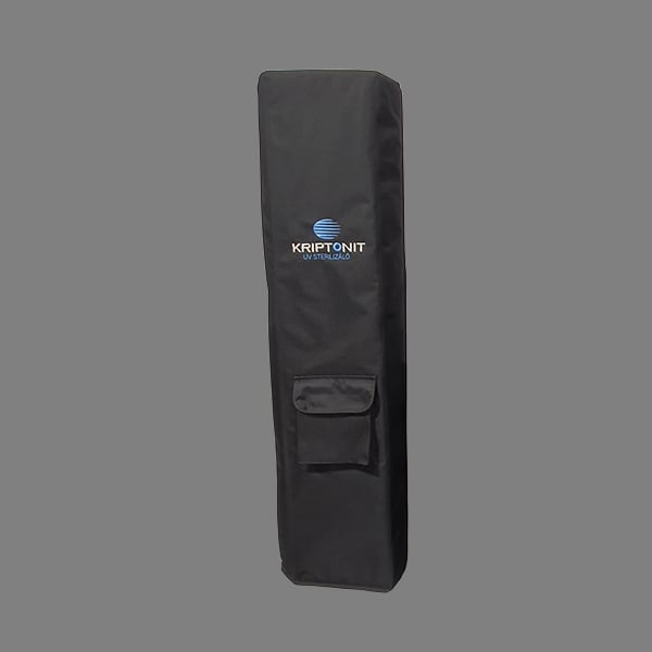 - Strapabíró impregnált gyöngyvászon anyagból készült, hímzett KRIPTONIT logóval ellátott védőburkolat, a lámpatestek szállításához, és raktározás alatti védelméhez.